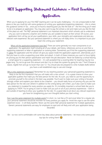 Nqt Supporting Personal Statement Guidance Example Template First Application Training Trainee Teaching Resources